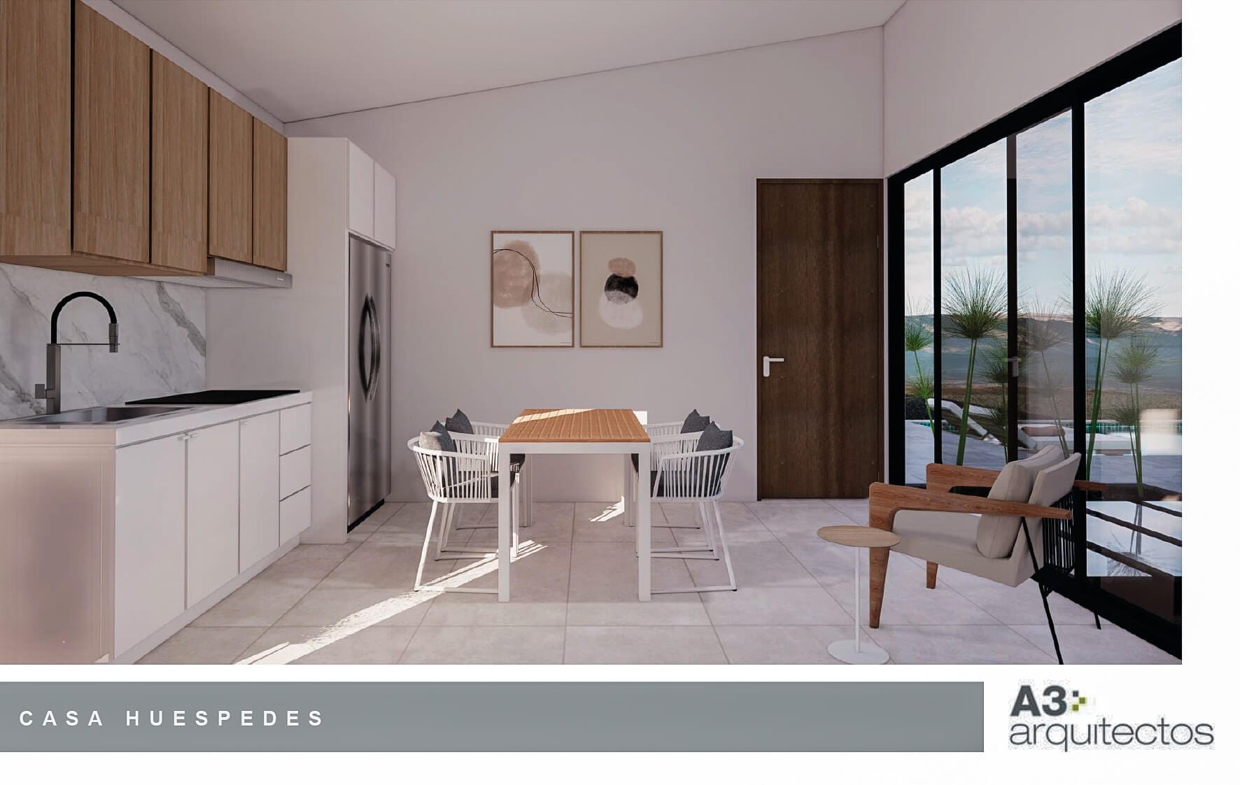 Casa Robles 47 features a primary home with three ensuite bedrooms and a separate one-bedroom guest house, both designed with an elegant tropical-modern aesthetic.